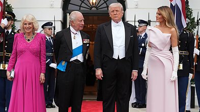 Tuo tarpu karalius atvyko su dovana – tai buvo dalis Didžiosios Britanijos pastangų sužavėti D. Trumpą ir pelnyti jo palankumą po to, kai šis griežtai sukritikavo ministrą pirmininką Keirą Starmerį už tai, kad šis atsisakė padėti jam kariauti su Iranu.