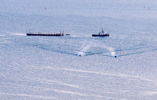 Šįkart nuspręsta barža jį nugabenti iki pat Šiaurės jūros, o jeigu reikės – ir toliau.