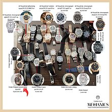 Jis įvardijo šiuos modelius ir galimas jų kainas: „AP Royal Oak Chronograph 25860 ST.05“ (30 tūkst. eurų), „AP Royal Oak Selfwinding 15305OR.OO.DO88CR.01“ (130 tūkst. eurų), „AP Royal Oak Tourbillon 26730OR.OO.132OR.01“ (230 tūkst. eurų), „AP Royal Oak Chronograph 26715ST.OO.1356ST.01“ (50 tūkst. eurų), „AP Royal Oak Chronograph 26325TS.OO.D005CR.01“ (45 tūkst. eurų), „AP Royal Oak Chronograph 26325OL.OO.D005CR01“ (60 tūkst. eurų) ir „AP Royal Oak 26703ST-BK03“ (30 tūkst. eurų).
